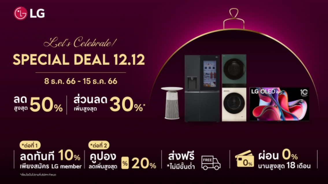 แอลจีปล่อยหลากโปรสุดปังฉลองส่งท้ายปี ทั้งโปรลดแรง โปร 1 แถม 1 และดีลพิเศษ ที่ร้านค้าออนไลน์ของแอลจี วันนี้ – 4 มกราคม 2567