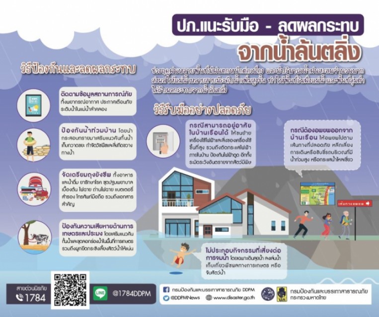 กรมป้องกันฯ แนะวิธีรับมือ, ลดผลกระทบ น้ำล้นตลิ่ง-น้ำป่า-ดินโคลนถล่ม