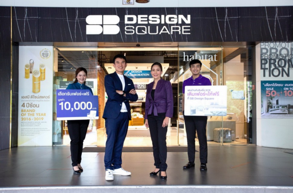 SB Design Square มองแนวโน้มตลาดเฟอร์นิเจอร์ฟื้นตัวและเติบโตต่อเนื่อง เดินหน้าสร้างมิติใหม่ครั้งแรกกับวงการสินเชื่อเอนกประสงค์สำหรับซื้อเฟอร์นิเจอร์ เพื่อตอกย้ำความเป็น Home Design Solutions ที่สามารถ ตอบโจทย์ทั้งเรื่องสินค้าและบริการได้ครบจบในที่เดียว โดยร่วมกับธนาคารไทยพาณิชย์เปิดตัวแคมเปญ “แต่งบ้านกับสินเชื่อ SCB เติมเฟอร์ให้ฟรีที่ SB Design Square” เพียงช้อปที่ SB Design Square ครบ 100,000 บาท และเลือกชำระด้วยสินเชื่อเอนกประสงค์ SCB ได้สิทธิ์เลือกรับฟรีเฟอร์นิเจอร์เพิ่มมูลค่า 10,000 บาท แคมเปญเริ่มแล้วตั้งแต่วันนี้ถึง 31 ธ.ค.นี้เท่านั้น
