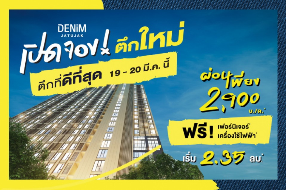 แกรนด์ ยูนิตี้ จะหยุดทุกการรอคอย 19-20 มี.ค.นี้ พร้อมเปิดให้จอง “อาคาร บี” อาคารที่ครบและดีที่สุดจากทั้งหมด 4 อาคารของโครงการ เดนิม จตุจักร จัดโปรโมชันสุดคุ้ม แบบไม่ต้องคิดเยอะ! ฟรี เฟอร์นิเจอร์* ฟรี เครื่องใช้ไฟฟ้า* ส่วนลดสูงสุด 400,000 บาท* พิเศษ ผ่อนดาวน์เพียง 2,900 บาท/เดือน* เริ่ม 2.35 ล้านบาท* มั่นใจยอดขายทะลุเป้า กำหนดสร้างเสร็จพร้อมให้เข้าอยู่ในเดือนพฤษภาคมนี้