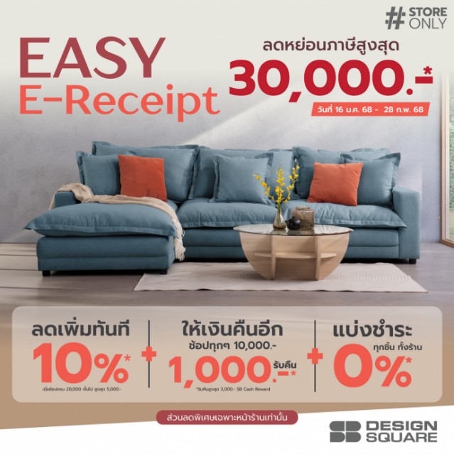 เอสบี ดีไซน์สแควร์ ชวนช้อปลดหย่อนภาษี “Easy E-Receipt 2.0” พร้อมจัดแคมเปญต้อนรับปีใหม่แบบดับเบิ้ลคุ้ม 3 ต่อ กระตุ้นการจับจ่ายต้นปี 68