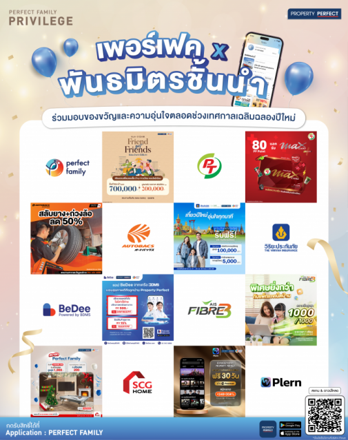 บริษัท พร็อพเพอร์ตี้ เพอร์เฟค จำกัด (มหาชน) ร่วมกับพันธมิตรชั้นนำ 7 องค์กร มอบสิทธิพิเศษ เพื่อเป็นของขวัญต้อนรับปีใหม่ 2568 ให้กับสมาชิกโครงการพร็อพเพอร์ตี้ เพอร์เฟค หลากหลายรายการ ทั้งฟรีค่าบริการ ส่วนลดพิเศษค่าบริการและการซื้อสินค้าครอบคลุมด้านสุขภาพ