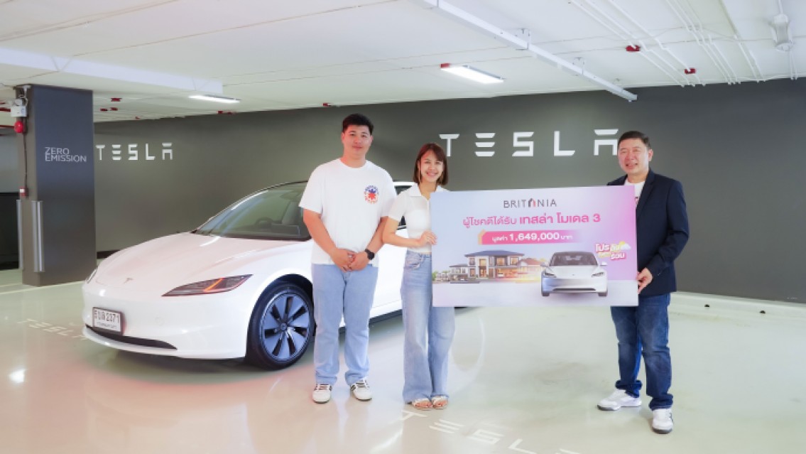 จัดใหญ่ แจกจริง! บริทาเนีย แจกรางวัลใหญ่รถยนต์ไฟฟ้า Tesla Model 3 ให้แก่ผู้โชคดีจากแคมเปญ “บริทาเนีย โปรลับ จังหวะร้อน”