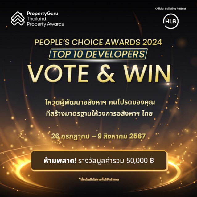 งานประกาศรางวัล PropertyGuru Thailand Property Awards สุดยอดงานมอบรางวัลเกียรติยศ วงการอสังหาริมทรัพย์ไทยที่จัดขึ้นอย่างต่อเนื่องยาวนานที่สุดในประเทศไทย ประกาศเพิ่มรางวัล People’s Choice Awards ครั้งแรกในประเทศไทย ให้ผู้บริโภคที่ซื้ออสังหาริมทรัพย์ในไทยได้โหวตผู้พัฒนาอสังหาที่ชื่นชอบ โดยรางวัลนี้เป็นส่วนหนึ่งของงานอันทรงเกียรติครั้งที่ 19 ที่ทุกคนรอคอย
