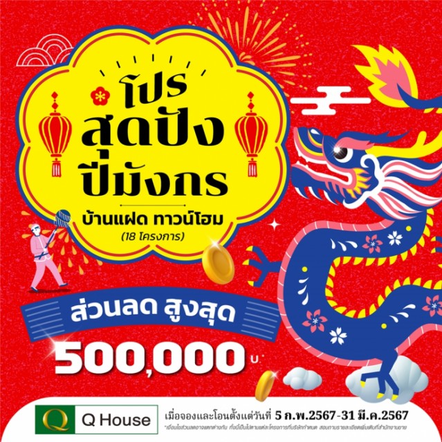 “ควอลิตี้เฮ้าส์” จัดแคมเปญ “โปรสุดปังปีมังกร” มอบส่วนลดสูงสุด 500,000 บ.* กับบ้านแฝด ทาวน์โฮม 18 โครงการ บนทำเลกรุงเทพฯ ปริมณฑล และต่างจังหวัด