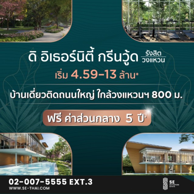 สถาพร เอสเตท (SE) ลุยตลาดอสังหาฯ ครึ่งปีหลัง นำ 2 โครงการบ้านเดี่ยวคุณภาพ บน 2 ทำเลสุดฮอต อย่าง โครงการ ดิ อิเธอร์นิตี้ กรีนวู้ด รังสิต-วงแหวน (THE ETERNITY GREENWOOD Rangsit - Wongwaen) และ โครงการ ดิ อิเธอร์นิตี้ โกร์ฟ สายไหม-พหลฯ (THE ETERNITY GROVE Saimai - Phahol) ร่วมจัดโปรโมชันสุดพิเศษ เพื่อมอบข้อเสนอแบบฟินๆ ฟรียาวๆ กับดีลดี ฟรี! ค่าส่วนกลาง 5 ปี* และฟรี! ค่าใช้จ่ายวันโอน* ตั้งแต่วันนี้ถึง 15 สิงหาคมนี้