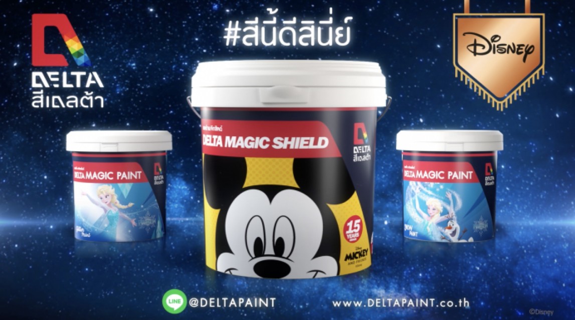 สีเดลต้า หนึ่งในผู้นำในธุรกิจสีทาอาคารที่อยู่คู่คนไทยมายาวนานกว่า 42 ปีสร้างปรากฏการณ์ครั้งสำคัญกับแบรนด์ระดับโลกอย่าง “ดิสนีย์” เป็นครั้งแรกของไทยพัฒนาสี“เดลต้า เมจิก ชิลด์” (DELTA MAGIC SHIELD) หนึ่งในคอลเลคชั่นสี “เดลต้า เมจิก ซีรีส์”(DELTA MAGIC SERIES)เพื่อยกระดับวงการสีทาอาคาร ด้วยการสร้างสรรค์ผลิตภัณฑ์ในมิติใหม่ๆ ที่ตอบโจทย์ความพึงพอใจของลูกค้าทางด้านอารมณ์ (Emotional) เหนือกว่ารูปแบบของผลิตภัณฑ์สีทาอาคารแบบเดิมๆ ที่มุ่งเน้นในเรื่องของประโยชน์ใช้สอย(Functional) เป็นหลัก มอบสีที่ให้ทุกอย่างที่เจ้าของบ้านต้องการครบในถังเดียว (all you need in one)พร้อมความเข้าใจถึงคุณค่าแห่งสีสันที่ไม่ใช่เพียงสีที่ตามองเห็น แต่คือการแต่งแต้มจินตนาการของดิสนีย์ในทุกอณูสี ส่งต่อความสุขให้กับทุกคนในบ้านได้อย่างไม่รู้จบ