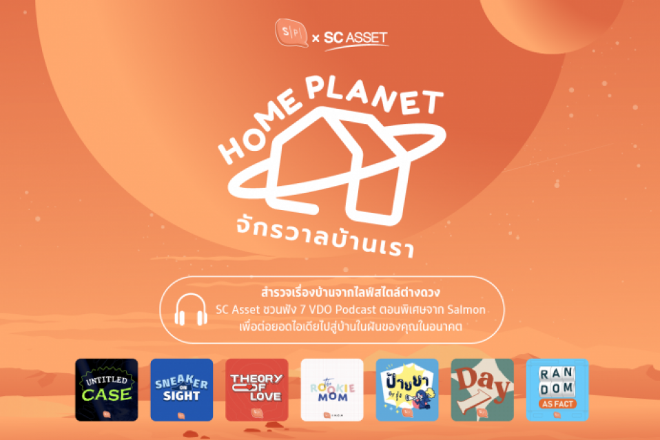 บมจ.เอสซี แอสเสท คอร์ปอเรชั่น ผู้ส่งมอบ Living Solutions บ้านและคอนโดทุกระดับราคาด้วยคุณภาพมาตรฐานสูงที่มุ่งสู่การเป็นแบรนด์บ้านเดี่ยวอันดับ 1 ในใจผู้บริโภค ได้ร่วมกับ Salmon Podcast ชวนออกสำรวจบ้านในฝันผ่าน 7 รายการดัง กับ ซีรีส์พิเศษในแคมเปญสุดชิค Home Planet #จักรวาลบ้านเรา ซึ่งจะรวบรวมเรื่องราวเกี่ยวกับบ้านสำหรับคนรุ่นใหม่หัวใจ Gen Z ปล่อยให้ฟังกันอย่างเพลิดเพลิน ตั้งแต่ 18 ต.ค. นี้เป็นต้นไป