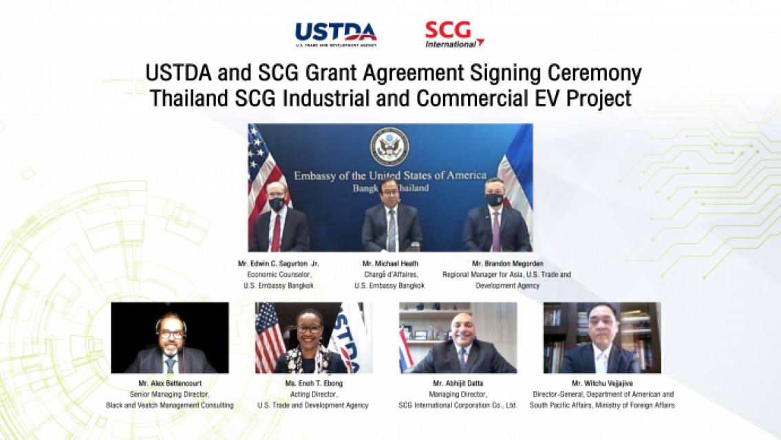 บริษัท เอสซีจี อินเตอร์เนชั่นแนล คอร์ปอเรชั่น จำกัด ในธุรกิจซีเมนต์และผลิตภัณฑ์ก่อสร้าง เอสซีจี ลงนามร่วมกับสำนักงานการค้าและการพัฒนาแห่งสหรัฐอเมริกา (USTDA) เพื่อการศึกษาและพัฒนาแผนงานสำหรับธุรกิจยานยนต์พลังงานไฟฟ้า นำร่องศึกษาการใช้งานสำหรับธุรกิจซีเมนต์และผลิตภัณฑ์ก่อสร้าง เอสซีจี