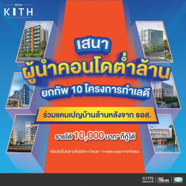 SENA สนองแคมเปญ “บ้านล้านหลัง (เฟส 2)” ขน 10 คอนโดโลเคชั่นดี “เสนาคิทท์” ปลุกดีมานด์