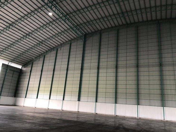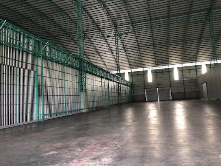 โกดังใหม่พร้อมใช้งาน โครงสร้างแข็งแรง หลังคาสูง ประตูใหญ่ อากาศถ่ายเทดี มีถนนเข้าคลังโดยตรง