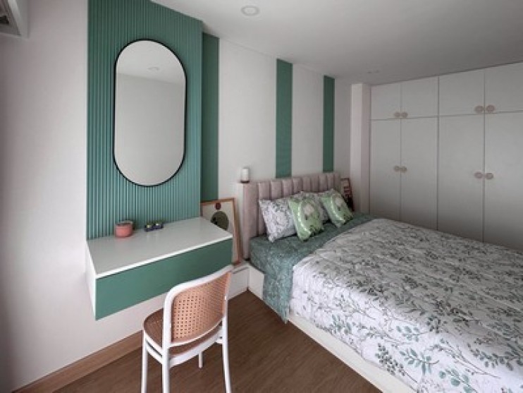 - ห้องถูกออกแบบสไตล์ มินิมอล ขาว เขียว สบายตา