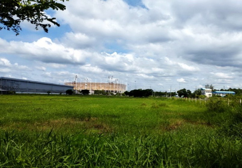 ขายที่ดิน หนองจอก ตรงข้ามบางกอกอารีน่า ติดถนนเชื่อมสัมพันธ์ เนื้อที่ 21-3-39 ไร่