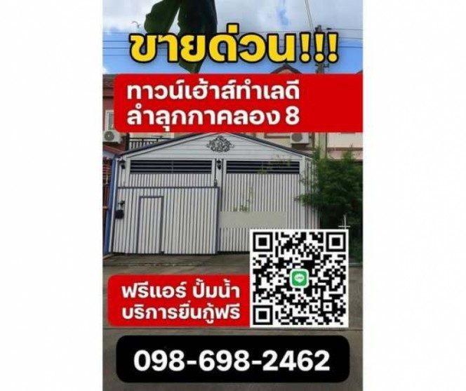 ขายด่วน! ทาวน์เฮาส์รีโนเวทใหม่ ตกแต่งพร้อมอยู่ ทำเลทอง “กรีนการ์เด้นท์โฮมลำลูกกาคลอง 8”