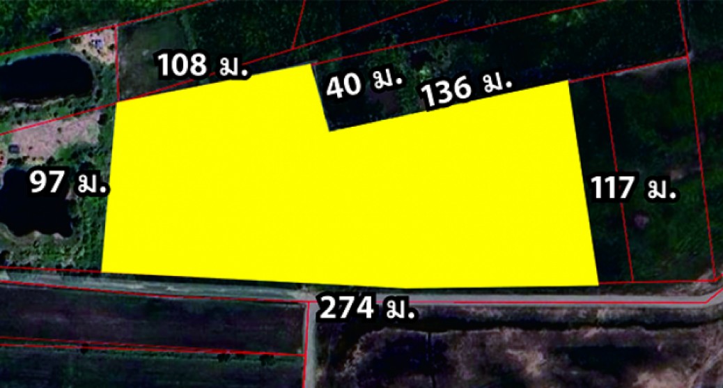 - หน้ากว้างติดถนน 274 ม. ลึก 123 ม., ใกล้แหล่งชุมชน, สถานที่ราชการ