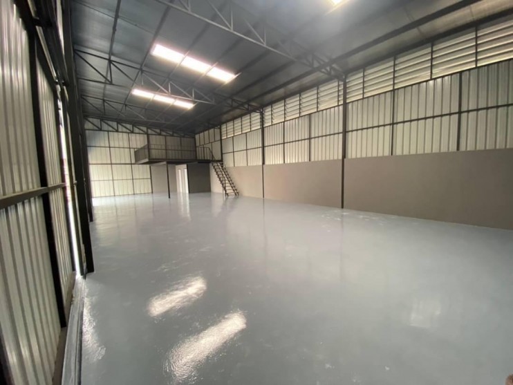 พื้นที่ใช้สอย 180 ตารางเมตร โกดังสูง 6 เมตร ทางเข้ากว้าง 5 เมตร ห้องน้ำ 2 ห้อง จอดรถได้หลายคัน