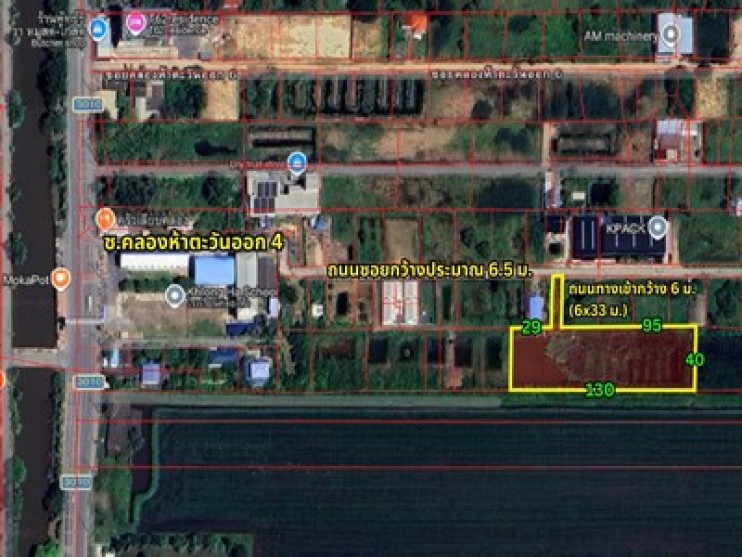 ขายที่ดินซอยคลอง 5 ตะวันออก 4 ติดถนนสาธารณะ