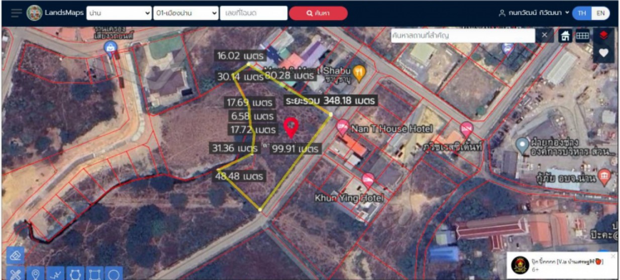 -ขายที่ดิน 102 ตารางวา ตำบลท่าน้าว อำเภอภูเพียง จังหวัดน่าน