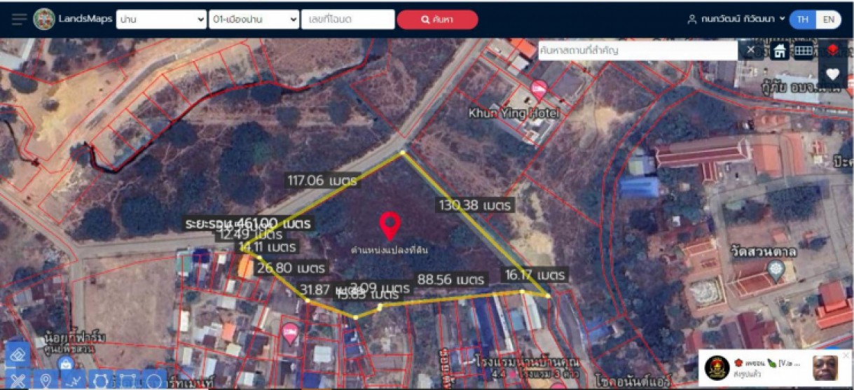 ขายที่ดิน ขนาดเนื้อที่ดิน 6 ไร่ 1 งาน 89 ตารางวา น่าน