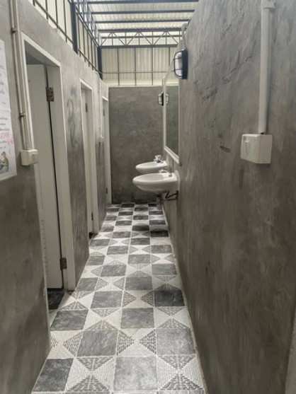 ห้องพักคนงาน ขนาด 3.6x3.9 m. รวม 14 ตรม. มีห้องน้ำในตัว หรือสามารถทุบกำแพงเพื่อขยายออฟฟิศได้