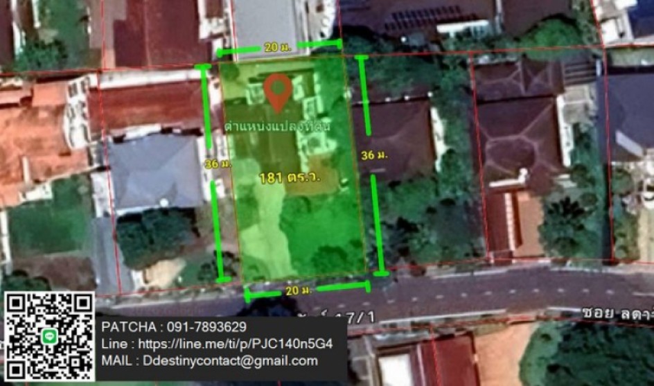 • เนื้อที่ 181 ตารางวา พื้นที่ดิน : สีเขียว