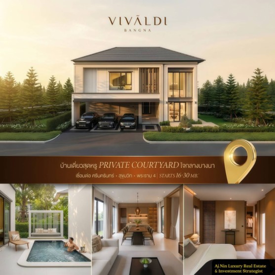 ส่วนลด+ของแถมเกิน 3 ล้าน!! บ้านเดี่ยวสุดหรู พร้อมคอร์ทยาร์ดส่วนตัว ทำเลทองบางนา ใกล้รถไฟฟ้า ห้าง ทางด่วนฯ เดินทางสะดวก เข้า-ออก ได้หลายเส้นทาง หาของกินง่าย ใกล้ตลาด เซเว่น ร้านค้า ร้านอาหารมากมาย บ้านเดี่ยวสุดหรู 4 ห้องนอน พร้อมคอร์ทยาร์ดส่วนตัว หนึ่งเดียวบนบางนา "ตอบโจทย์ครบครัวใหญ่" โครงการ VIVALDI Bangna ให้ทุกวันของคุณเต็มไปด้วยความสบายและคุณภาพชีวิตที่ดียิ่งขึ้น อัดเต็มด้วยฟังก์ชันที่รองรับไลฟ์สไตล์ของทุกครอบครัว “ตื่นขึ้นมาทุกวันด้วยความสงบและสดชื่น ด้วยความเงียบสงบ วิวสวน และความเป็นส่วนตัวที่ประณีต กลายเป็นความหรูหราในทุกวันของคุณ บ้านแถวหน้าสุดที่โอบล้อมด้วยภูมิทัศน์อันเงียบสงบ” - สังคมคุณภาพ 110 ครอบครัว - ถนน Asphalt road ทั้งโครงการ - Wellness Club 24 ชั่วโมง - ใกล้ IKEA & Mega Bangna ทางด่วนบางนา และสนามบินสุวรรณภูมิ - รายล้อมด้วยโรงเรียนนานาชาติชื่อดังมากมาย + มีบ้านให้เลือก 3 แบบ + ขนาดที่ดิน 58 - 97 ตร.วา + พื้นที่ใช้สอย 215 - 328 ตร.ม. สิ่งอำนวยความสะดวก > คลับเฮาส์, ฟิตเนส 24 ชม., Boutique Gym > สระว่ายน้ำระบบเกลือ พร้อมสระเด็ก > Jacuzzi, Yoga Room, Co-Working Room > Harmonic Play Station, Reflexology Path > Multi-Sport Court, Outdoor Fitness > Jogging Track, Edible Garden > ระบบรักษาความปลอดภัยตลอด 24 ชม. ที่ตั้ง : ต.บางแก้ว อ.บางพลี จ.สมุทรปราการ 10540 พิกัด : https://maps.app.goo.gl/KEKLx9G7F1THhskeA สถานที่สำคัญใกล้เคียง • MRT สายสีเหลือง สถานีศรีแบริ่ง 2.5 กม. • BTS สายสีเขียว สถานีบางนา 8.3 กม. • Mega Bangna & IKEA 4.9 km • Index Living Mall บางนา 6.5 km. • Central บางนา 6.7 km. • Seacon Square 7.5 km. • Paradise Park 8.6 km. • Market Village สุวรรณภูมิ 11.2 km. • Central Village 15 km. • King Power ศรีวารี 20 km. • Bangkok Mall 21.5 km. • Thai-Singapore International School 2.4 km. • Concordian International School 5.2 km. • Wells International School 5.8 km. • Bangkok Patana School 6 km. • International Community School (ICS) 6.9 km. • Raffles American School (RAS) 7.8 km. • Berkeley Intemational School 7.9 km. • St.Andrews International School 8.9 km. • Verso Intemational School 17 km. • ทางพิเศษบูรพาวิถี, ทางพิเศษเฉลิมมหานคร • วงแหวนรอบนอกกรุงฝั่งตะวันออก • โรงพยาบาลพริ้นซ์ สุวรรณภูมิ 2.7 km. • โรงพยาบาลศิครินทร์ 3.3 km. • โรงพยาบาลไทยนครินทร์ 6 km. • โรงพยาบาลสิรินธร 15.5 km. • โรงพยาบาลสมิติเวช ศรีนครินทร์ 15.8 km. PRIVATE VIEWING BY APPOINTMENT ONLY พร้อมรับส่วนลดพิเศษ เมื่อนัดหมาย - เข้าเยี่ยมชมโครงการเท่านั้น + ส่วนลดสูงสุด 2,700,000 บาท** + ฟรีทุกค่าใช้จ่าย* + ฟรี Voucher มูลค่า 100,000 บาท* + ฟรีที่พักสุด EXCLUSIVE THE STANDARD PATTAYA มูลค่า สูงสุด 10,000 บาท* + ฟรี Pocket Money สูงสุด 100,000 บาท** (**เฉพาะคนที่เห็นโพสนี้เท่านั้น) *บ้านแปลงโปรโมชั่น มีจำนวนจำกัด *เงื่อนไขเป็นไปตามที่บริษัทฯ กำหนด **เพียงจองตั้งแต่วันนี้ - 30 เม.ย. 2569 และโอนกรรมสิทธิ์ภายใน 29 พ.ค.2569 ราคาพิเศษเริ่มต้นเพียง 16 - 35 ล้านบาท* ลงทะเบียนรับสิทธิพิเศษ 0865153569 คุณนินทร์ ID Line : ninja.skyline หรือ คลิก : https://line.me/ti/p/MQnSu7D23W