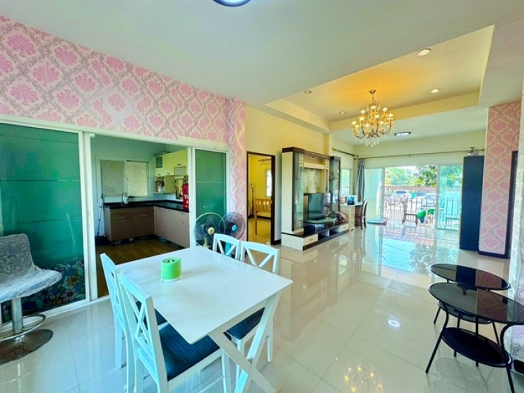 พื้นที่ภายในจัดสรรอย่างลงตัว มีโถงกลางกว้าง รองรับการพักผ่อนและใช้ชีวิตร่วมกัน พร้อมครัวบิ้วอินรูปแบบ L shape ใช้งานสะดวก