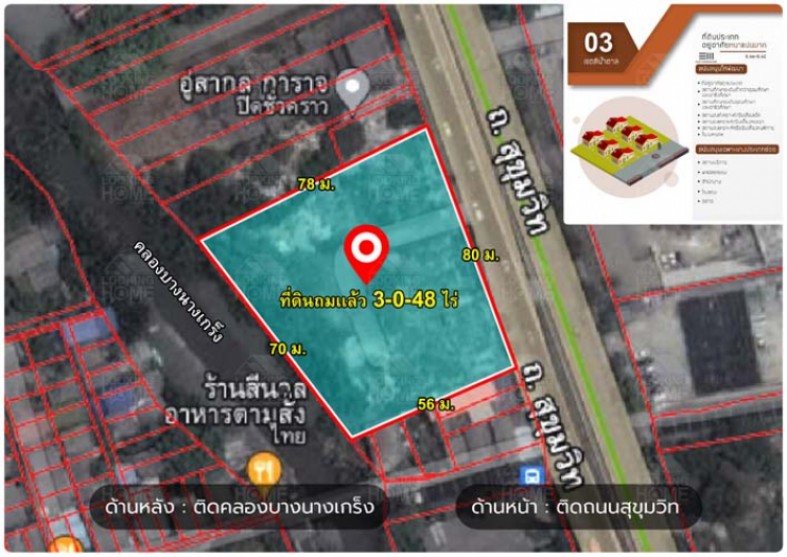 L-120 : ที่ดินถมแล้ว 3-0-48 ไร่ ถ.สุขุมวิท ใกล้ BTS ช้างเอราวัณ 300 เมตร