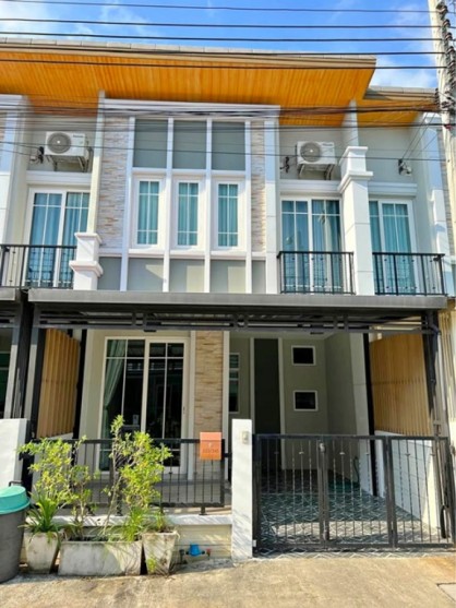 Bangna Suanluang Luxury project with central area Ratchaphruek Market 2.3 km. Townhouse for rent 2-storey 16 sq.wa. 130 sq.m. Golden kitchen extension and garage 3 bed 2 bath Pan Asia International School 2.4 km. Mega Bangna 20,999 B-M. Good location next to the main road convenient transportation Kanchanaphisek Road.
