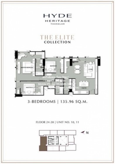 1. คอนโด ไฮด์ เฮอริเทจ ทองหล่อ (HYDE Heritage Thonglor) BTS ทองหล่อ โดยห้องพักอยู่ชั้น 28 พื้นที่ใช้สอย 135.96 ตร.ม. มีขนาด 3 ห้องนอน 3 ห้องน้ำ และสามารถจอดรถได้ 2 คัน