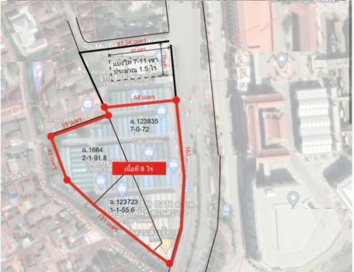 ตลาดสวนสยาม 600 ม.ให้เช่าที่ดินสวย 8 ไร่ อยู่ในย่านชุมชน ติดถนนใหญ่ หน้ากว้าง 163 ม.เหมาะแก่การทำลงทุนทุกธุรกิจ
