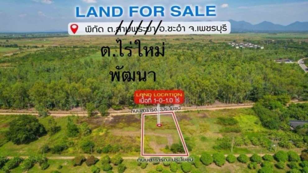 ขายที่ดิน 1 ไร่ พิกัดตำบลไร่ใหม่พัฒนา อำเภอชะอำ เพชรบุรี โฉนดครุฑแดง