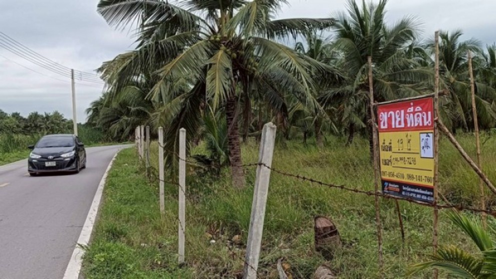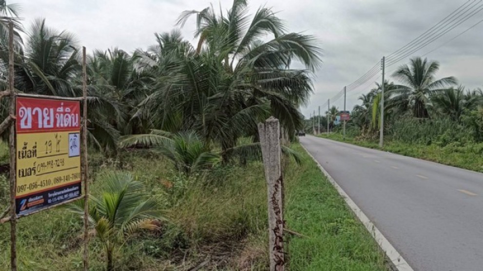 ขายที่ดินสวนมะพร้าว 19 ไร่ ติดคลองและถนนดำ บ้านแพ้ว ซอยทุ่งเศรษฐี สมุทรสาคร