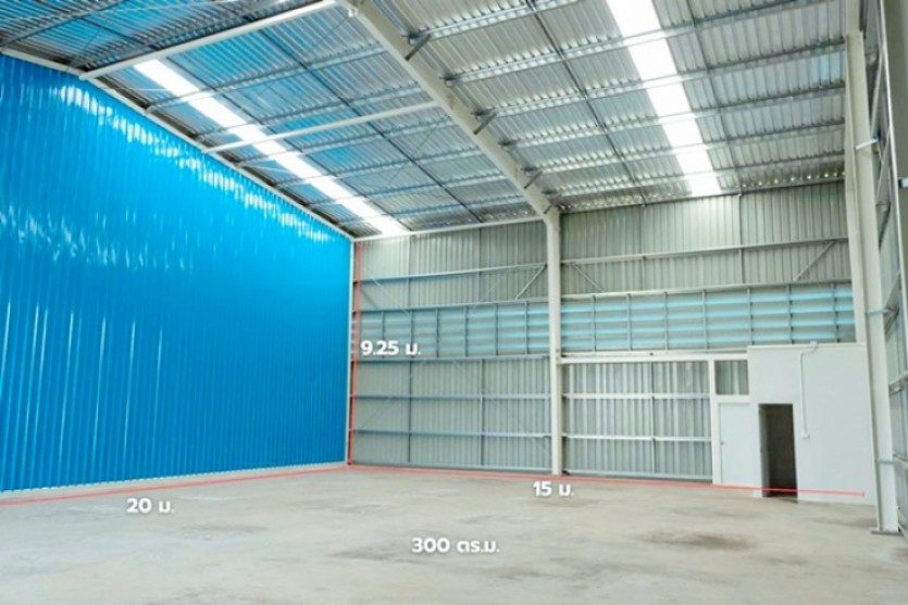 โกดังสร้างใหม่พร้อมใช้งาน พื้นที่ภายในโล่ง โปร่ง ระบายอากาศดี