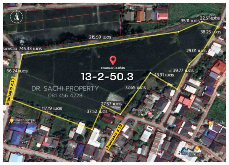 Property ID : LDS69-014 ที่ดินสวย เหมาะทำโครงการจัดสรร ใกล้สนามบินนานาชาติเชียงราย ถนนบายพาสฝั่งตะวันออก - เนื่อที่ 13 ไร่ 2 งาน 50.3 ตารางวา (5,450.3 ตรว.) - ที่ดิน ยาว 272 เมตร โดยประมาณ - ที่ดินติดถนน 2 ด้าน (ถนนคสล.) - ที่ดิน ทิศเหนือ ติดลำเหมือง - ที่ดิน ทิศตะวันออก ติดถนนสาธารณะ ประมาณ 112 เมตร - ที่ดิน ทิศตะวันตก ติดถนนสาธารณะ ประมาณ 61 เมตร - ผังเมือง สีชมพู (ที่ดินประเภทชุมชน) - น้ำประปา-ไฟฟ้า เข้าถึง ------------------------------------- ** ราคาขาย : : 38,152,100 บาท ** (7,000 บาท/ตรว.) ราคาขาย ไร่ละ : : 2,800,000 บาท (ค่าใช้จ่ายในการโอน ผู้ซื้อ ออกทั้งหมด) ------------------------------------- : : ลักษณะเด่น : : - เอกสารสิทธิ์โฉนดครุฑแดง (นส4จ) - อยู่ในแหล่งชุมชน ใกล้สถานศึกษา โรงพยาบาล ตลาด ธนาคาร สถานที่ราชการ - ทำเลดีมาก ติดถนนสาธารณะทั้งสองฝั่ง - การเดินทางสะดวก สามารถ เข้า-ออก ได้หลายเส้นทาง - จากถนนพหลโยธิน 1.8 กม. , บายพาสตะวันออก 950 ม. - เหมาะทำโครงการหมู่บ้านจัดสรร ขนาดไม่ใหญ่มาก ------------------------------------- สถานที่ตั้ง : : หมู่บ้านปางลาว ซ.10 ต.บ้านดู่ อ.เมือง จ.เชียงราย 57100 Google Map : : https://goo.gl/maps/Y7YfddeGnCJK5XmE8 ------------------------------------- : : สถานที่สำคัญใกล้เคียง : : - ลีโอ เชียงราย สเตเดียม - Big C เชียงราย 2 - Makro เชียงราย - ตลาดบ้านดู่ - ม.ราชภัฏ เชียงราย - รพ.กรุงเทพ เชียงราย - พิพิธภัณฑ์บ้านดำ - สวนไม้งามริมน้ำกก - ศูนย์ราชการ เชียงราย - โรงเรียนเทศบาล 6 นครเชียงราย - โรงเรียนเทศบาล 7 ฝั่งหมิ่น - น้ำพุร้อนโป่งพระบาท - วัดร่องเสือเต้น ------------------------------------- : : สอบถามรายละเอียดเพิ่มเติมติดต่อ : : คุณฌัชษชี ฌัชปภาส์มณ (อ้อม) (ในสังกัดสมาคมนายหน้าอสังหาริมทรัพย์ไทย) Tel & LINE : 081-456-4228 What App : (+66) 81 456 4228 LINE ID : dr.sachiproperty LINE OA : @dr.sachiproperty Facebook : Dr. Sachi Property