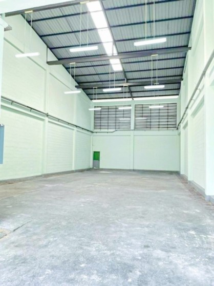 near BangNamChueang Market 1.2 km. Warehouse with 2 story office 1 bed 3 bath 100 sq.wa. 270 sq.m. 26,999 B-M modern design mini factory suitable for SME businesses or warehouse easy access for transport vehicles near Samut Sakhon Industrial Estate 2.5 km. Ekachai Road Rama 2