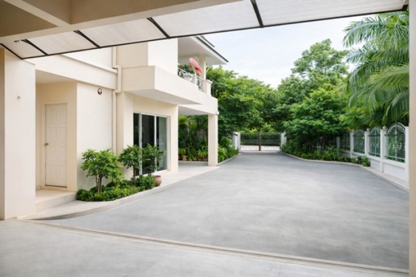 พื้นที่จอดรถรองรับได้หลายคัน บริเวณบ้านกว้าง